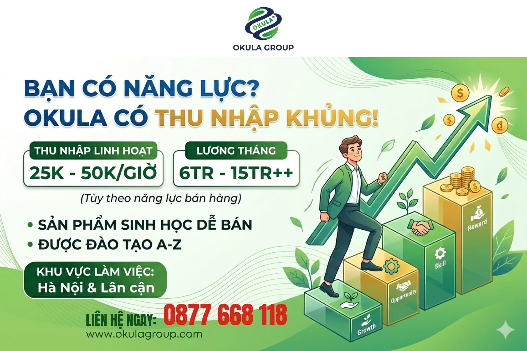 OKULA GROUP TUYỂN DỤNG NHÂN VIÊN TƯ VẤN BÁN HÀNG TẠI ĐIỂM BÁN (OFFLINE)