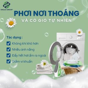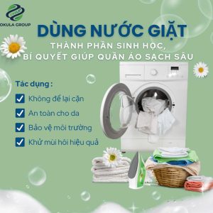 Các mẹo vặt trên nhằm “chữa cháy” cho những ngày thời tiết không như ý nhưng để bền lâu và tiết kiệm thời gian thì OKULA lựa chọn thay đổi từ bước đầu nhỏ nhất là sử dụng nước giặt sinh học có chiết xuất từ các sản phẩm từ thiên nhiên để quần áo dù là ngày mưa to hay tạnh ráo, dù lạnh buốt hay nóng nực cũng đều giữ được hương thơm lâu lại không gây hại cho làn da và sức khỏe của người dùng. Nước giặt sinh học có chứa thành phần enzyme và hoạt chất tự nhiên giúp phân giải sạch sâu chất bẩn, mồ hôi, dầu thừa, vốn là “thức ăn” của vi khuẩn. Đặc biệt, nước giặt sinh học của OKULA vốn không chứa chất tẩy hóa học mạnh sẽ không để lại tình trạng tồn dư hóa chất bám trong từng sợi vải – nơi nấm mốc và vi khuẩn dễ trú ngụ nhất.