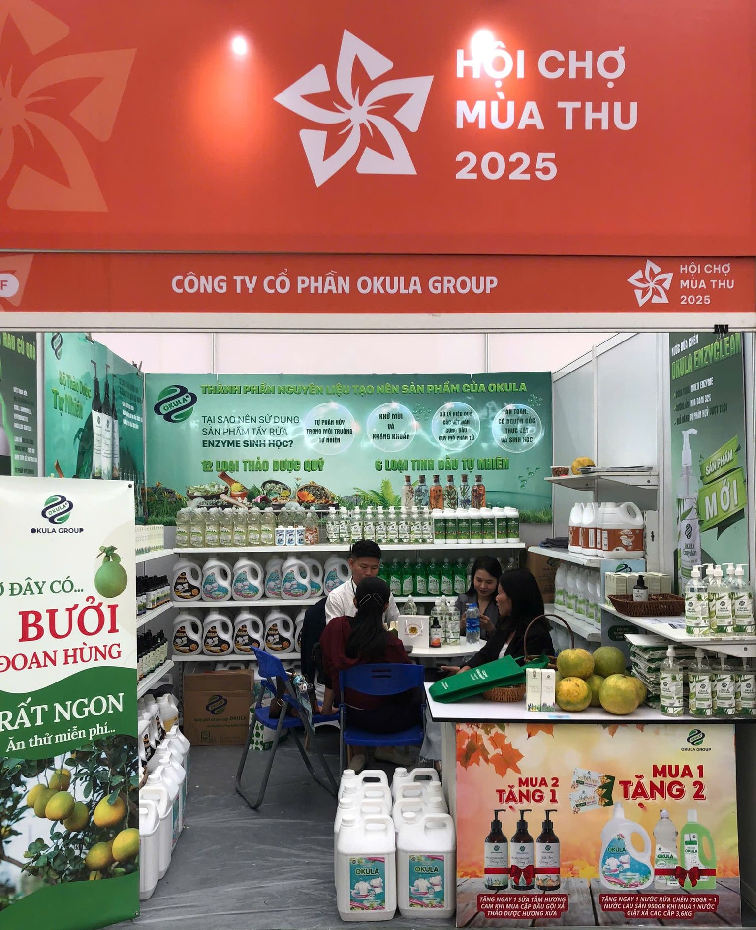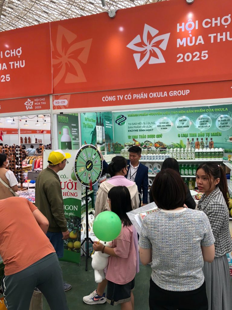 Trong không khí sôi động của hội chợ Okula Group tham dự Hội Chợ Mùa Thu 2025 với gian hàng nổi bật, giới thiệu các sản phẩm xanh – tự nhiên và chương trình ưu đãi hấp dẫn, thu hút đông đảo khách tham quan.